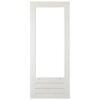 De 40 mm dikke merbau achterdeur wordt in een lichtgrijze grondlak geleverd, klaar om direct af te lakken.